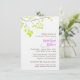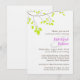 This elegant and romantic rehearsal dinner invitations feature a delicate tree branch with lime green leaves and all the important information for your upcoming dinner plans. The bride and groom's names are in violet purple. This coordinates well with the rest of the Violet Romance Wedding Set.