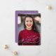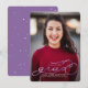 Celebrate your graduate in style with this single photo graduation announcement. It features a full-bleed photo with violet faux foil script over it. The graduate's name, year and school name are all editable.