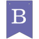 A simple bunting flags banner for a violet (purple) wedding, with the names of the bride and groom, with white caps on violet background.