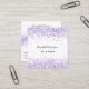 An elegant white background. Decorated with violet, lavender coloured confetti. Personalise and add your name, title, profile photo, phone number, mail, website adsress, qr code to your website or social media account.