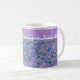 A stylish white coffee mug to personalise, with a pretty pattern of Violets, one of the February Birth Month Flowers, from a watercolour painting by Judy Adamson. Part of the Posh & Painterly 'Sweet Violets' collection.