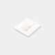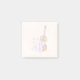 Small square sticky notes with a soft feminine design. Illustrated with a watercolor image of a wooden violin, some pink ballet slippers resting against it and decorated with flowers and butterflies. A semi-transparent white overlay is layered over top to give it a soft faded look for easy writing on top. Set on a peach pink coloured background.