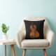 This throw pillow presents a classical still life of an elegant old violin. This graceful instrument is essentially a hollow wooden box with rounded ends, two graceful f holes and a narrow centre. The four sets of strings extend from a string holder at the bottom of the body over a raised bridge to the end of the narrow neck, or fingerboard where the four strings are inserted into a pegbox and are held there with pegs. The pegs are used to tune the violin. When the bow is drawn across the strings on the body of the violin it produces incredible, magical music! The gorgeous golden brown, almost orange tones are set off by graceful black velvet fabric. The image is repeated on the back.