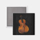 This magnet presents a classical still life of an elegant old violin. This graceful instrument is essentially a hollow wooden box with rounded ends, two graceful f holes and a narrow centre. The four sets of strings extend from a string holder at the bottom of the body over a raised bridge to the end of the narrow neck, or fingerboard where the four strings are inserted into a pegbox and are held there with pegs. The pegs are used to tune the violin. When the bow is drawn across the strings on the body of the violin it produces incredible, magical music! The gorgeous golden brown, almost orange tones are set off by graceful black velvet fabric.