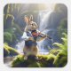 Violin-Playing Rabbit in Beautiful Rainforest Square Sticker