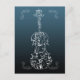 A violin consisting entirely of white calligraphic flourishes and ornamental scrolls is set against a midnight blue background
