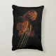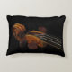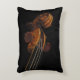 This accent pillow presents a classical still life of an elegant old violin scroll. This graceful instrument is essentially a hollow wooden box with rounded ends, two graceful f holes and a narrow centre. The four sets of strings extend from a string holder at the bottom of the body over a raised bridge to the end of the narrow neck, or fingerboard where the four strings are inserted into a pegbox and are held there with pegs. The pegs are used to tune the violin. When the bow is drawn across the strings on the body of the violin it produces incredible, magical music! The gorgeous golden brown, almost orange tones are set off by a black background.