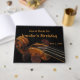 Easily personalise or remove the text on this stunning birthday party guest book which presents an elegant old violin scroll.