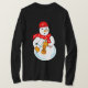 A snowman wearing a music note scarf and holding a violin is a funny winter music design for string musicians at birthdays, Christmas and the winter holidays.