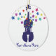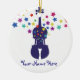 Add your own name to personalise this ceramic christmas ornament, featuring a blue violin with a burst of stars.