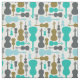 Violin/viola patterned fabric in shades of green, gold, and grey.