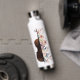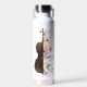 Violin with flowers. water bottle