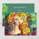 Colourful ,artistic and whimsical character ,vibrant watercolor painting in yellow,red green colours .