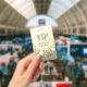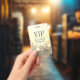 An elegant glam VIP all access pass VIP event badge featuring ombre white gold glitter soft bokeh and rose pink type. Add your event name and date.