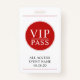 A simple red and white all access VIP event badge with your event date. Select your style of attachment.