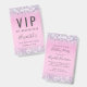 A unique birthday party invitation that also serves as a badge for guests to wear at the party and keep as a souvenir party favour. This pretty design features sparkly holographic purple, pink and silver faux glitter confetti on a pink background, her name in a soft grey trendy script and "VIP All Access Pass" on the top. On the reverse side, personalise the birthday party invitation.