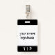 Customise this simple modern VIP pass badge with your logo. If your logo is square, it will fill up the white space entirely. If your logo is not square, it will show on a black background. The back of the badge can be personalised with the event name and date or year, or you can delete both to have an all black back. This minimalist staff badge is ideal for VIP passes at special events, festivals, concerts and conventions.