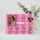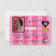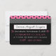 Back: Pink, white and black polka dots background on the upper BACK of the invitation lower area with event details in pink. Add your own photo