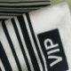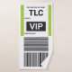 Styled as an international airline baggage-tag label with VIP status motif, plus your own choice of destination airport three-letter code, flight number, and passenger name.