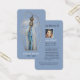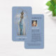 Beautiful and unique Virgin Mary catholic prayer card to remember the younger departed soul. This double sided card is fully editable in a contemporary striking style with gold frame on a sky blue background.