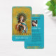 Beautiful and unique Virgin Mary catholic prayer card to remember the younger departed soul. This double sided card is fully editable in a contemporary striking style with gold stars, gold leaf and turquoise background.