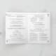 Inside text is displayed in the traditional format for a Catholic Nuptial Mass program and features room for up to seven bridesmaids and groomsmen.