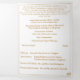 The Traditional Latin Nuptial Mass is a deeply reverent and beautiful celebration of the Sacrament of Matrimony, rich in tradition and deep in spirituality. Designed specifically for a Traditional Latin Mass wedding, the "Virgin Mary TLM" trifold wedding program contains the necessary parts of the Latin Nuptial Rite. Front cover bears the image of the Virgin Mary displayed as an oval at top right corner amid the image of roses against a white background. Heading is featured in a golden-coloured Nuptial font, while sub-heading is displayed in a clear print. Names of Bride and Groom are also displayed in a Nuptial font. Name and address of the church appear at bottom in a smaller print. With explanations of the Mass displayed throughout, this elegant design also includes the name of the wedding officiant, names of altar servers, names of the parents of the bride and parents of the groom, wedding party names including the names for a maid-of-honour and best man, room for up to seven bridesmaids and groomsmen names, plus the names of the flower-girl and ring bearer. In addition, design of back cover features the photo you supply displayed as an oval below a bible verse (or your message) against white background. All text is customisable.