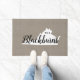 Modern farmhouse personalised doormat with your family name inside your state map. Faux burlap canvas texture background. Click Customise It to add your own text and images and create a unique one of a kind design!