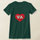 This t-shirt features a vibrant red heart containing the bold, white, upper case letters VA, the official abbreviation for Virginia, the old dominion state.