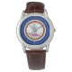 The watch looks really great! Very sharp and well done. The leather band is really nice, though for a man's watch I think it should be longer. Unfortunately, it isn't big enough for my husband's wrist but I will get a replacement because he is very excited to wear it!