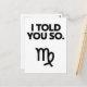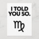This sassy and confident design features the Virgo zodiac sign and the phrase "I Told You So." Perfect for Virgos who love to prove they were right, this tee is a humourous way to express your superior knowledge and foresight.