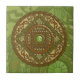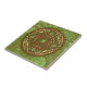 This Virgo themed mandala features a peridot stone surrounded by the symbol for the sign, the constellation, and the alchemical symbol for Earth among filigree and weaves. This tile can be framed to create a trivet or placed inside a wooden gift box. Tiles without a frame will also fit inside the gift box to create a matching set.