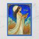 Postcard in an illustration of Virgo portraying a serene maiden symbolising purity, grace, and wisdom. Surrounded by golden wheat under a radiant full moon, she holds a basket of harvest fruits, reflecting Virgo’s earthy nature and nurturing spirit.