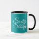 Celebrate turning 60 in style with this modern 60th birthday design on a blue green background, a chic 60th birthday gift mug you can simply personalise. The words sixty and sassy are set using modern script. If you need any help or matching products, please contact us through our store. We're happy to help you make your 60th birthday party a fabulous event!