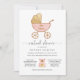 Virtual Baby Shower Girl Retro Carriage Pink Gold Invitation