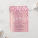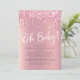 Celebrate the modern mother-to-be from a distance with a virtual online baby shower. This luxurious baby shower invitation features faux pink glitter dripping from the top, "Oh Baby!" in a stylish white script and a rose gold gradient background. You can easily personalise with the online shower details, including an online access link, registry information, where to send cards and gifts or the option to open online and send later, and where to get more information.