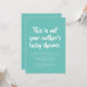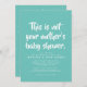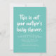 Modern times call for a modern baby shower invitation. If you're taking the party online due to social distancing, this is a perfect invitation for you. The bold playful text reads "This is not your mother's baby shower" and the party details below include room for online social meeting information, registry, shipping info and more along with the party details. The back features a coordinating playful dot pattern. The gender neutral teal colour is default, but it can be changed by clicking "customise further." Great for co-ed showers, adoption showers and two dad or two mum couple showers too - and anyone who appreciates your sense of humour and wit!