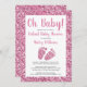 Celebrate the mummy-to-be with this cute baby girl virtual shower invitation featuring a pink faux glitter background, "Oh Baby!" written in a pink script and pink faux glitter baby feet. You can personalise with an online link for the event, where to send cards and gifts and a contact for more information.