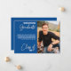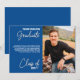 Create modern photo invitations for a virtual graduation party to recognise your 2022 graduate from high school or college. Personalised with the grad's name, and class year over a collegiate blue background, with space to write instructions to watch an online webcast of the commencement ceremony or afterparty with friends and family from any location.