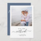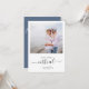 Rustic minimalistic design features modern script , botanical floral leaf with photo, and dusty blue colour on back of card. Easily personalise your information of choice. Ideal simple wedding invitation for a virtual online wedding.