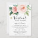 A beautiful watercolour pink blush florals and greenery design "Virtual" bridal shower invitation with matching design on the reverse side. Easy to edit or delete the available text fields to personalize the information with your own details for a professional and custom finish. Lots of matching items in this boho floral collection. Please visit my shop to see the full range. Stickers and address labels also available.