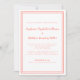 Virtual Wedding livestream Invitation features a simple contemporary minimalist design with a double frame border in living coral on a crisp white background. Traditional wording provides timeless yet modern sophistication. Personalise wedding design with your livestream details in chic coral lettering and script. The back of the card matches in solid living coral.