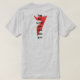 Front of shirt displays the seven heavenly virtues (Humility, Compassion, Abstinence, Chastity, Patience, Liberality, and Diligence) in a standard font with a blue 7 in the background. Back of shirt displays the seven deadly sins (Pride, Envy, Gluttony, Lust, Wrath, Greed, Sloth) in a scary font with a red seven in the background.