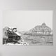 A black and white photograph of sandstone formations found in the Grand Canyon of Arizona.