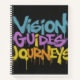 The Vision Guides Journeys notebook design features a captivating scene of a winding path stretching towards a distant horizon. Above, a majestic sun sets, casting warm hues of orange, pink, and purple across the sky, symbolising new beginnings and possibilities. Softly illuminated stars and a subtle compass at the corner represent direction and purpose. Birds soar gracefully through the sky, symbolising freedom and exploration. The design evokes a sense of adventure and inner clarity, making it perfect for those inspired to document their personal and visionary journeys.