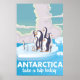 Visit Antarctica Vintage travel poster. Antarctica cartoon travel poster.