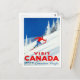 Hit the slopes with this stunning vintage "Visit Canada" travel poster design! Originally created by the Canadian Pacific Railway, this retro artwork features a downhill skier flying through the snow-covered mountains. The bold red, white, and blue colors capture the excitement of Canadian winter sports and travel. Perfect for skiing enthusiasts, winter vacation lovers, travel poster collectors, or anyone who appreciates classic mid-century advertising art and Canadian heritage.