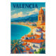 Bring home the sun-drenched spirit of Spain with this beautiful Valencia travel poster! Designed in a classic retro style, this artwork celebrates the vibrant city of Valencia, famous for its sweet oranges, stunning modern architecture, and the birthplace of paella. The bold colours and timeless design make it the perfect piece to commemorate a favourite trip, dream of future travels, or add a touch of European charm to your home or office decor.