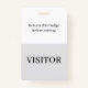Vertical Visitor's Pass badge in white and grey design. All elements are changeable or removable. Elements include: Company name, Visitor (can say "guest" or "pass" or any word, the phrase "Return this badge before exiting,"  Slot at top for lanyard, but you can choose another option, such as a metal clip or retractable strap. Also available in horizontal style.