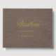 Visitors guest book with brown faux leather background and gold coloured text. Visitors is in an elegant script font and a vintage ornament separates that from the words Guest Book. Or edit the text as you like. Give your guest an elegant book to sign.